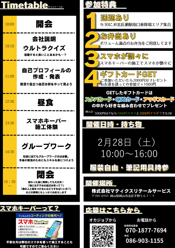 今後の就職活動に活かせるような1日になっています。