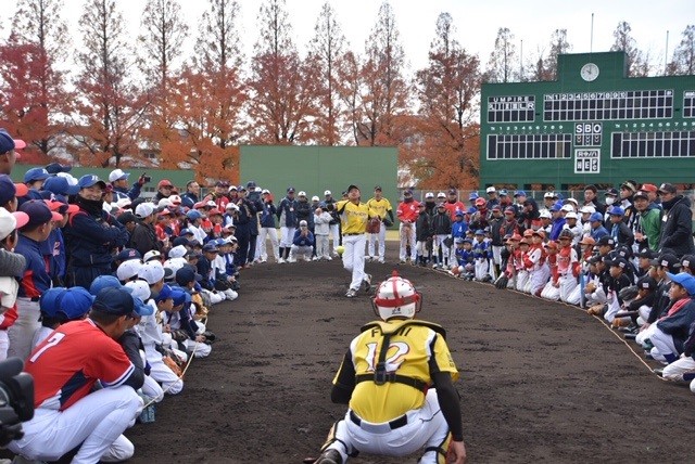 恒例となった岡山県営球場での教室のひとコマ